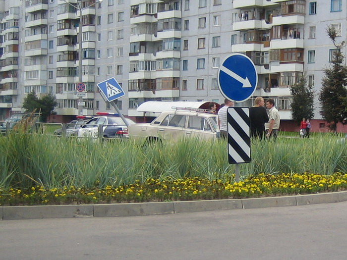Люди на втором фото ( где жигули ) смотрят в направлении Ауди ( которая, выезжая на проезжую часть со двора не пропустила жигули, или слишком высунулась), расстояние между двумя машинами приличное...