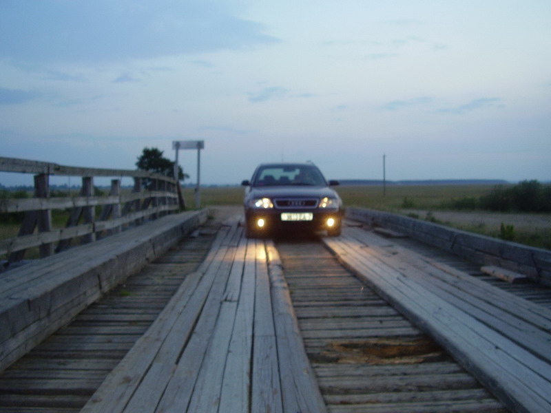 Вот так мы переезжали мост. Очень было страшно, но когда с утра увидели как по нему носятся тракторы - обсмеялись.