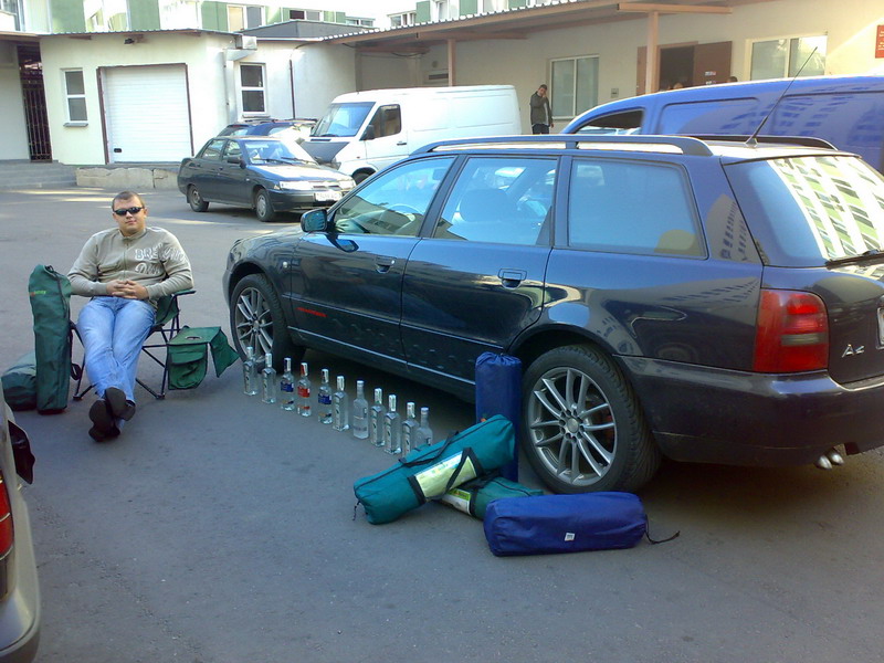 повергло меня в шок. Прохожие тоже толпились и не понимали что происходит. Дело было на ул. Мележа, 5. Вова, пьяный в дрыст, сидел с палатками на походном стуле прямо посреди дороги, рядом стоял его авто и уйма бутылок со спиртным.