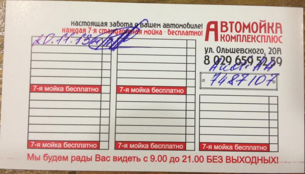 4) каждая 7-ая мойка бесплатно