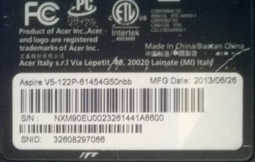 Есть ноутбук Acer Aspire V5-122P-61454.