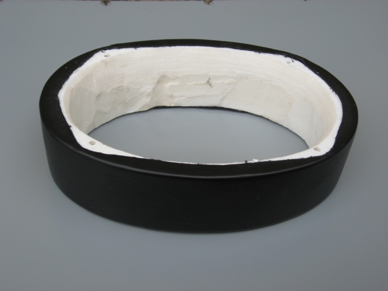 3. Оклеиваем подиум кожей. Кожу нужно сшить в кольцо и натянуть на подиум. Приклеивать кожу нужно только сверху и снизу подиума.