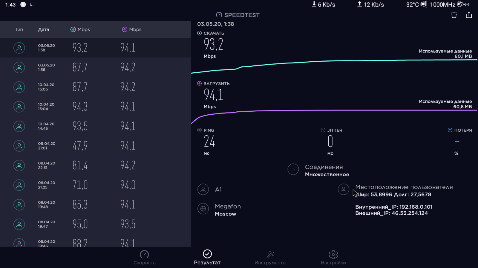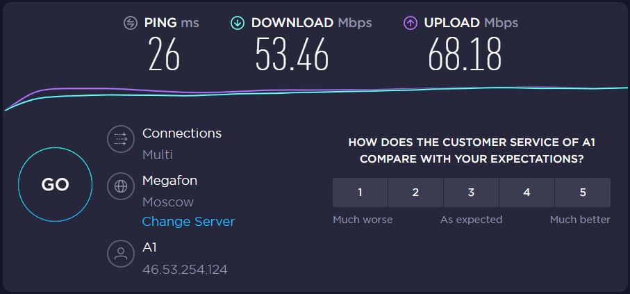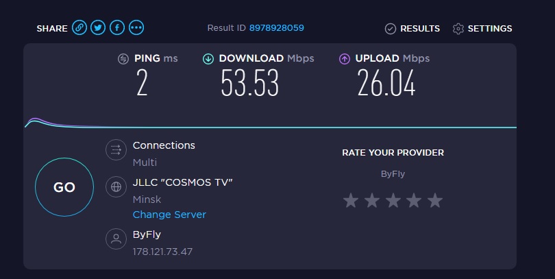 на тот же МТС или Космос-ТВ уже тарифная скорость: