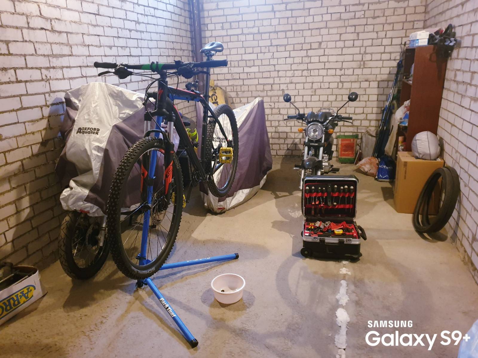 После зимнего сезона нужно было разобрать и почистить каретку, систему, задний переключатель, кассету, цепь, тормозные суппорта. Велосипед заранее вымыл на автомойке рядом с домом и он ждал меня в гараже. Сегодня вечером приступил к работам: