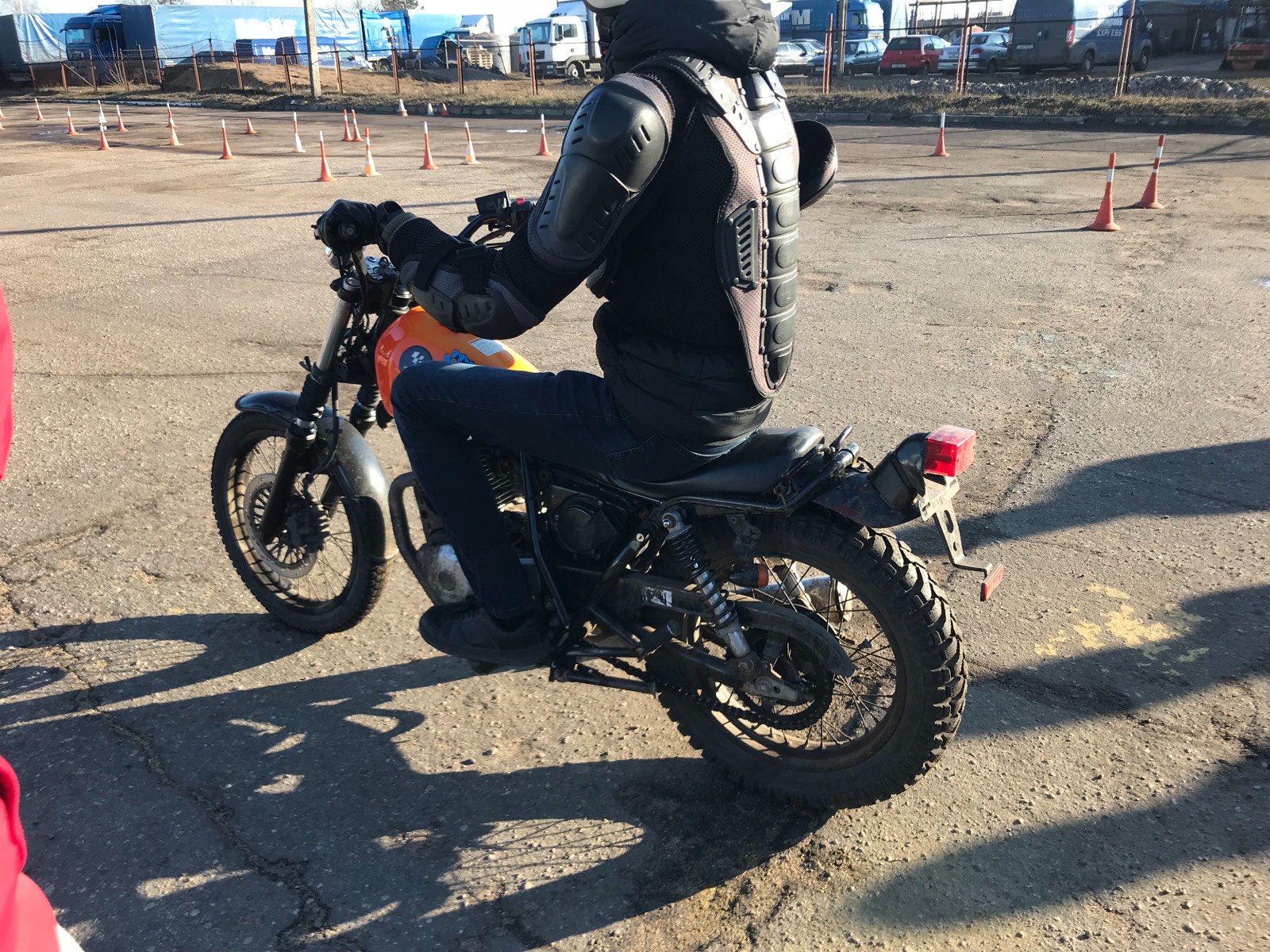 . Напомни сколько ты накатал за все время на мотоциклах? Я напомню что у меня уже за плечами 10К км, и это у меня даже категории "А" нет еще ;) Про велосипед молчу. Мотоцикл новый, пространство ограничено, поэтому считаю необходимым "выпустить шасси", чтобы чужой мотоцикл весом 250 кг не приложить ненароком.