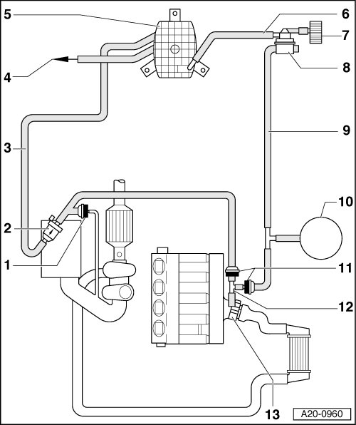 Я так понимаю проверить трубки соединяющий бак и дроссельную заслонку. т.е.схема между п.2 и 5, 2 и 11, 11 и 12, 12 и 13.