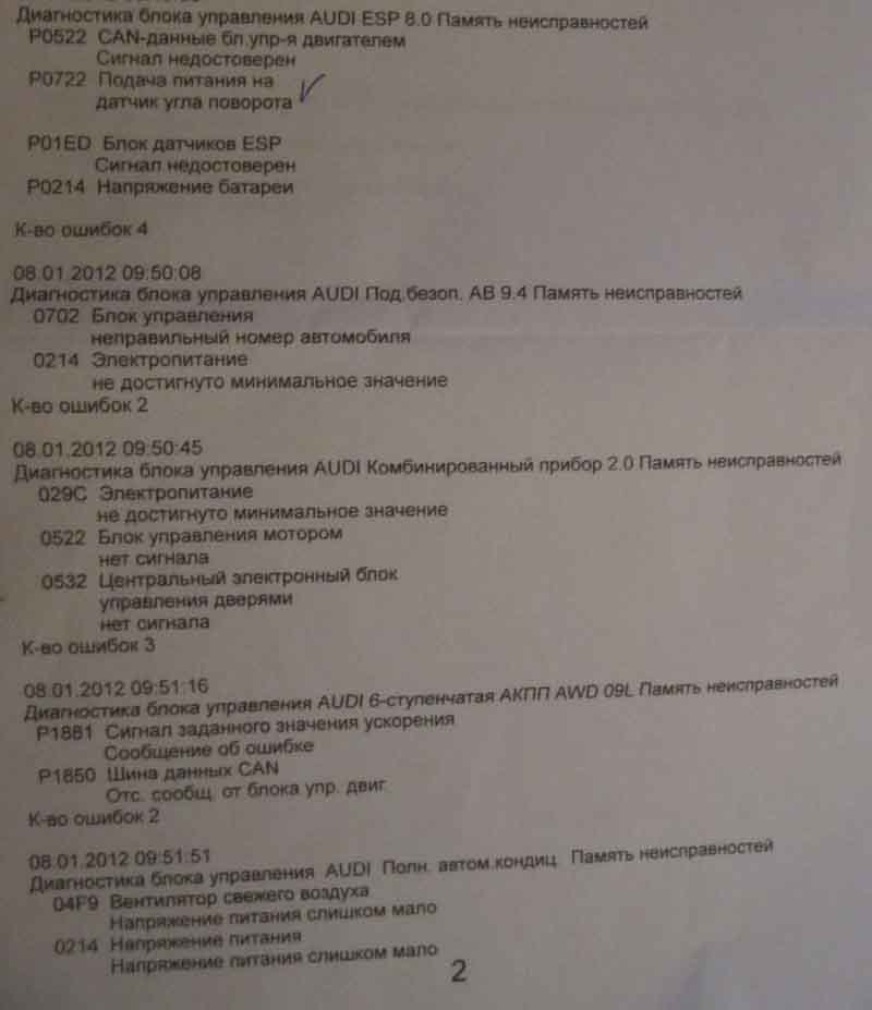 Сдесь есть на форуме грамотные спецы. Но думаю быстрее по времени подскажут на http://www.audi-club.ru. Зарегся там и выложи ошибки в тему http://www.audi-club.ru/forum/showthread.php?t=142982