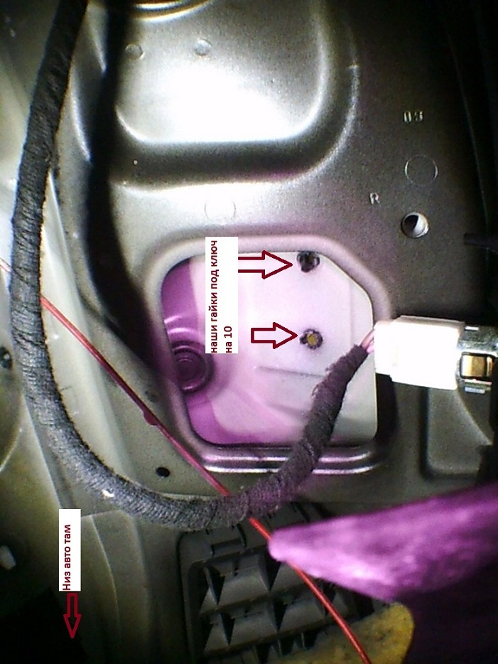 Потом по 4-ри гайки из нутри багажника с каждой стороны, так как комплектация (Г) -хорошая, нам ничего не мешает, правая сторона на ура,