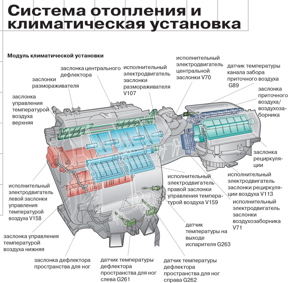 А по поводу проблемы, заслонки никакие не щелкают, может подача холодного воздуха просто заклинила. Тут неплохо компом посмотреть ошибки, провести тест всех заслонок отдельно, ну или хотя бы адаптацию сделать, ее и без компа можно запустить, но мне сдается мало поможет она. Схема с audi a4 b6 в помощь: