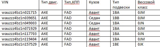 От типа КПП (МКПП, типтроник-АКПП или вариатор-АКПП), моно-привод или Quattro, наличие кондиционера, наличие прицепного устройства.ЗНАХАРЬ писал(а):... вессовой класс зависит не только от типа двигателя и КПП, но и еще от чего-то. От чего?