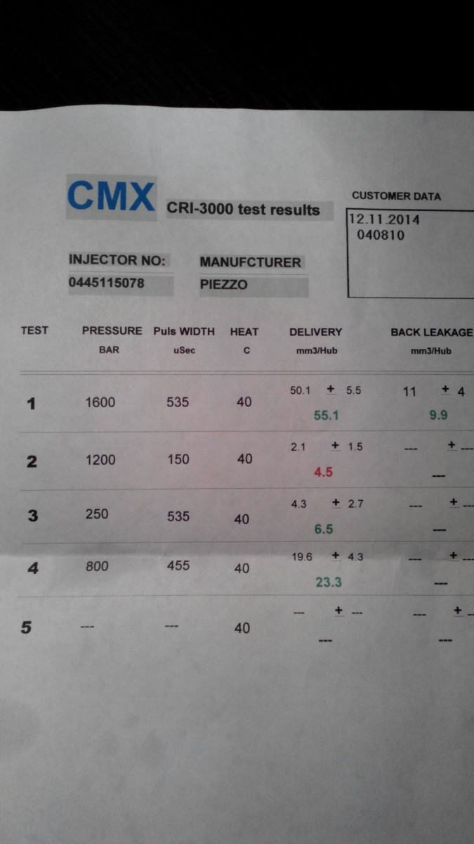 На протоколах то, что выделено красным цветом, выходит за допуск. Что можно наблюдать на обоих форсунках. Делаем выводы...