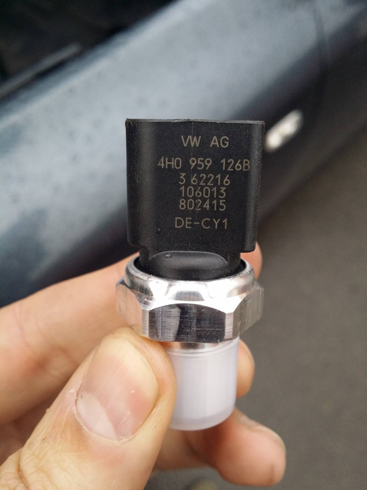 Немного по датчику. Оригинальный, установленный с завода был серого цвета, номер 4F0959126B. Его сняли с производства и последняя замена по ELSA 4H0959126B, он уже черного цвета. Отличие по диаметру металлической части, соответственно и разные ключи рожковые нужны для демонтажа/установки.