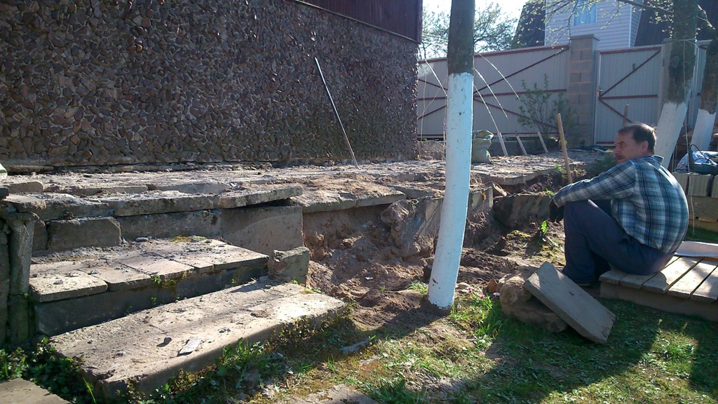 Имели дорожку-отмостку выполненную на песчаной подсыпке, поверх лежали плитка 50х50 и на растворе уложены куски мрамома в хаотичном порядке. Со временем все это дало трещину и контруклоны..... Да и сам мрамор в увлажненном состоянии не самая лучшая поверхность для передвижения....