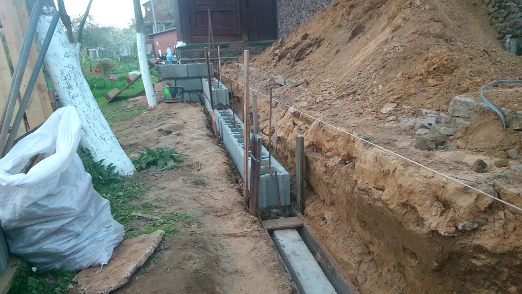 Делаем штрабу в земле под будующий фундамент опорной стены