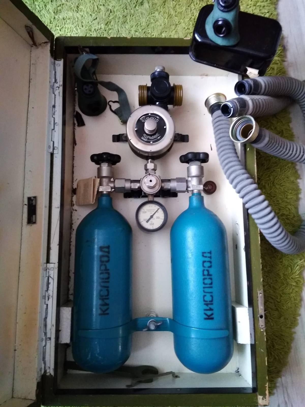 Кислород подаётся в резиновый мешок, дальше в противогаз, оттуда выдыхаемый воздух попадает в фильтр, далее в резиновый мешок , смешивается с новой порцией кислорода и так пару часов.
