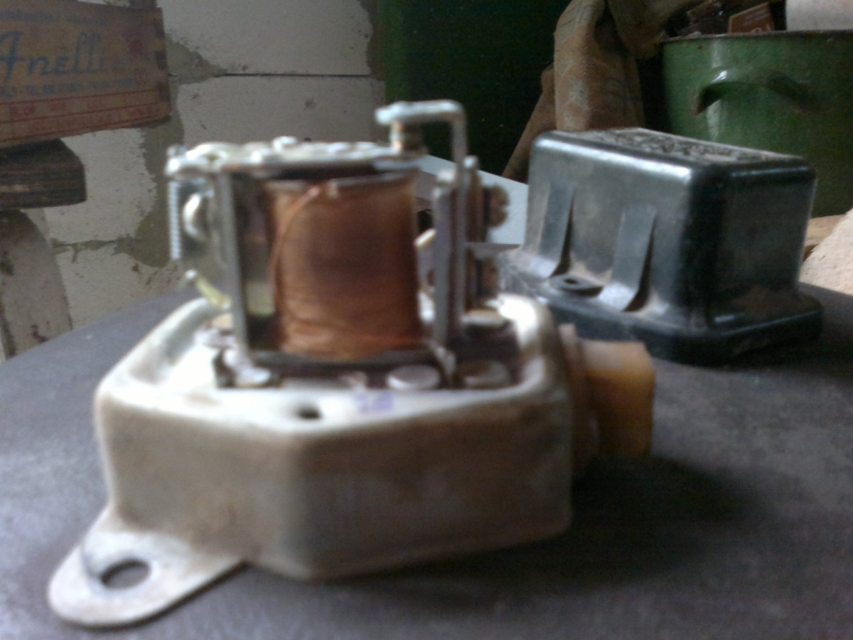 А внутри интересная вещь: контактная группа, и электромагнит. Еще полминуты - контактная группа разобрана, за 3 минуты контакты зачищены нулевкой (причина в них была - болезнь из за долгой стоянки), и еще за 3 минуты реле отрегулировано на зазор в этой самой контактной группе.