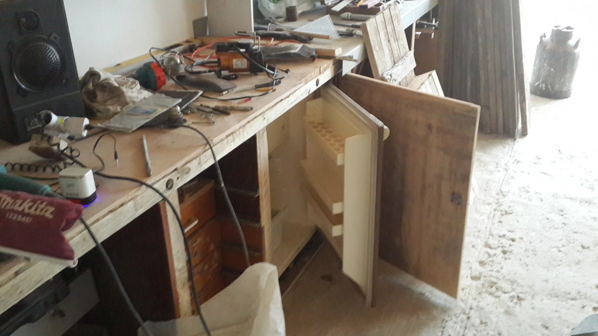 Верстачек также вместил в себя холодильничек, дверька на всякий случай закрывается на замочек :hahaha: