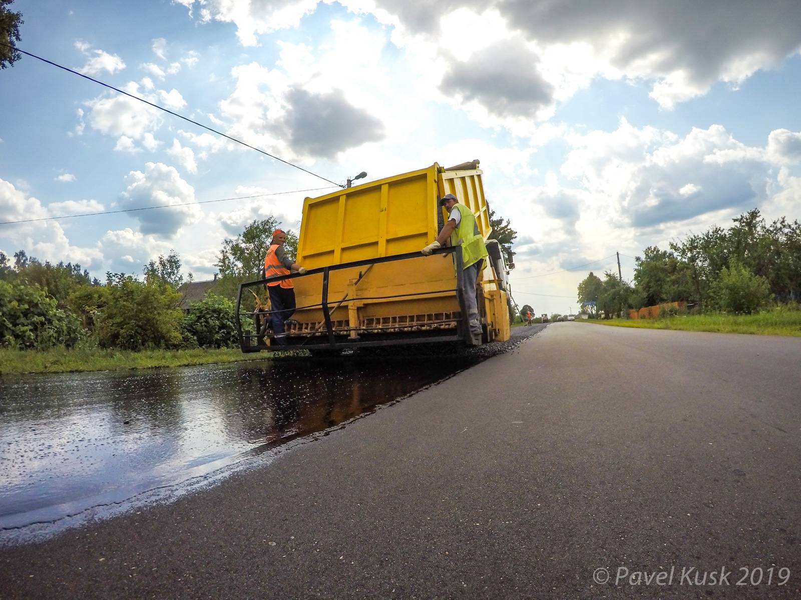 Все это они лили, сыпали и утрамбовывали на новенький гладенький асфальт с разметкой. Я надеюсь это новая технология такая :???: