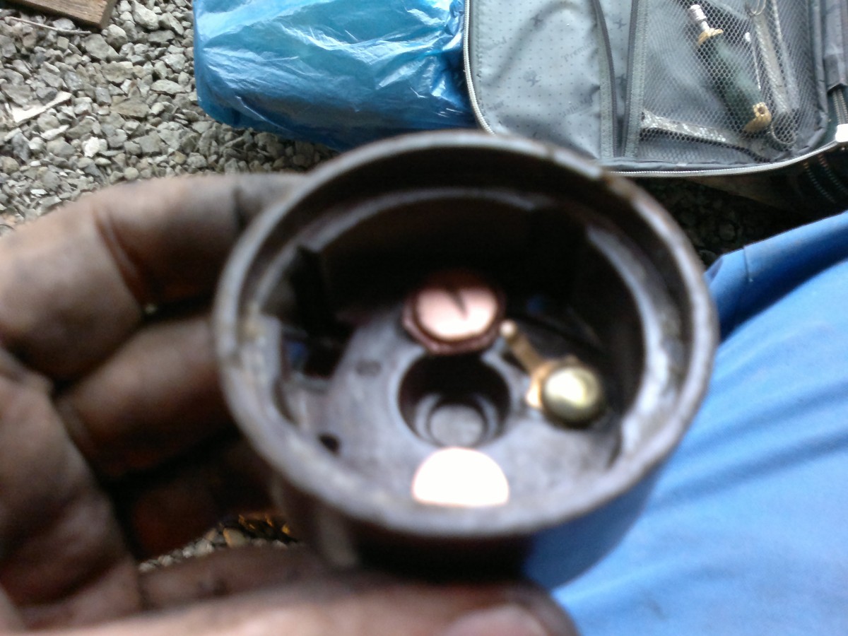 Уже по сложившейся традиции для электрических дел в этой машине на сцену вышли напильник и наждачка, которые привели контакты в нормальное состояние. Добавлю лишь, что из-за плохого контакта сильно грелся один из "пятаков", что привело в расплавлению крышки контактной группы. Т.к. новой нет, а собрать хотелось, для компенсации высоты контакта "пятака" после расплавления, а также зачистки контакта, обточил с боков и подложил медную шайбу под низ. Почему медную - ее легко обточить, да и деформируется она хорошо, что мне было и нужно.