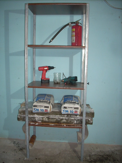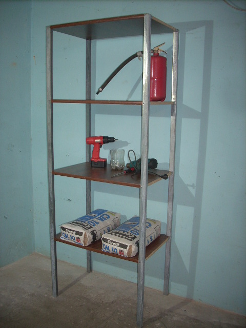Придумал как обеспечить чрезмерную жёсткость стеллажа и вот изделие для подсобных помещений и мини-складов готово.
