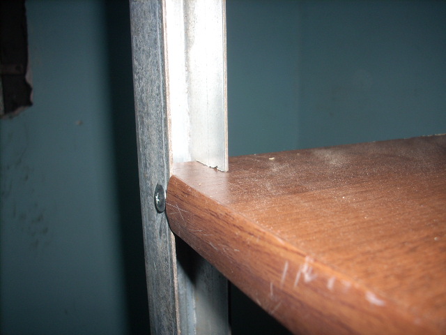 Доска лежит на ребре профиля. При превышении нагрузки сломается , либо прогнётся ДСП. Но для таких целей надо использовать мои основные стеллажи.