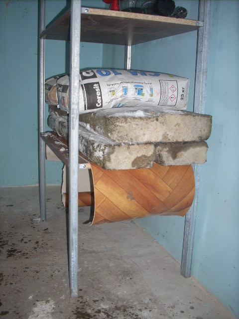 Если есть желание, можете подъехать помочь укладывать бетонные блоки на полку. Уверен , что в краткосрочной перспективе 300 кг на полку из ДСП не предел при правильном распределении нагрузки.