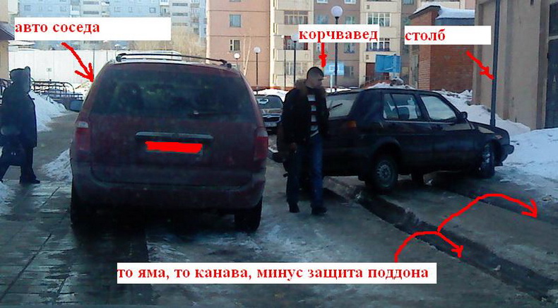 Вот, помог людям разъехаться во дворе, один корчвавед перегородил своим 2 гольфом проезд (типо занесло) и образовалась пробка. Ни вперед ни назад, впереди сугроб ледяной, сзади сосед автос поставил на тратуар, а по середине - ледяные калеи. Пришлось спалить номер квартиры соседа, чтобы тот вышел и отогнал свое "торговое" ведро. Он у нас оливковый король, один раз видел, как его крайслер "стоял", не наверное правильно сказать - лежал на пузе во дворе, был загружен полностью коробками с оливками до-верху! Просто п..ц какой-то! Это надо же любить так свое авто!