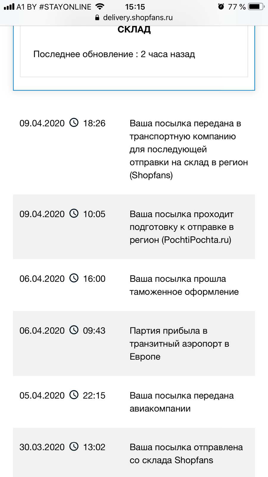 Сегодня затестил как работает доставка Shopfans в условиях COVID-19 через Москву с объяснительной. Образец документа я давал в этой теме выше. Всё гуд, посылка очень быстро прошла таможню и приехела в Минск. Заказывал на Амазоне в США.