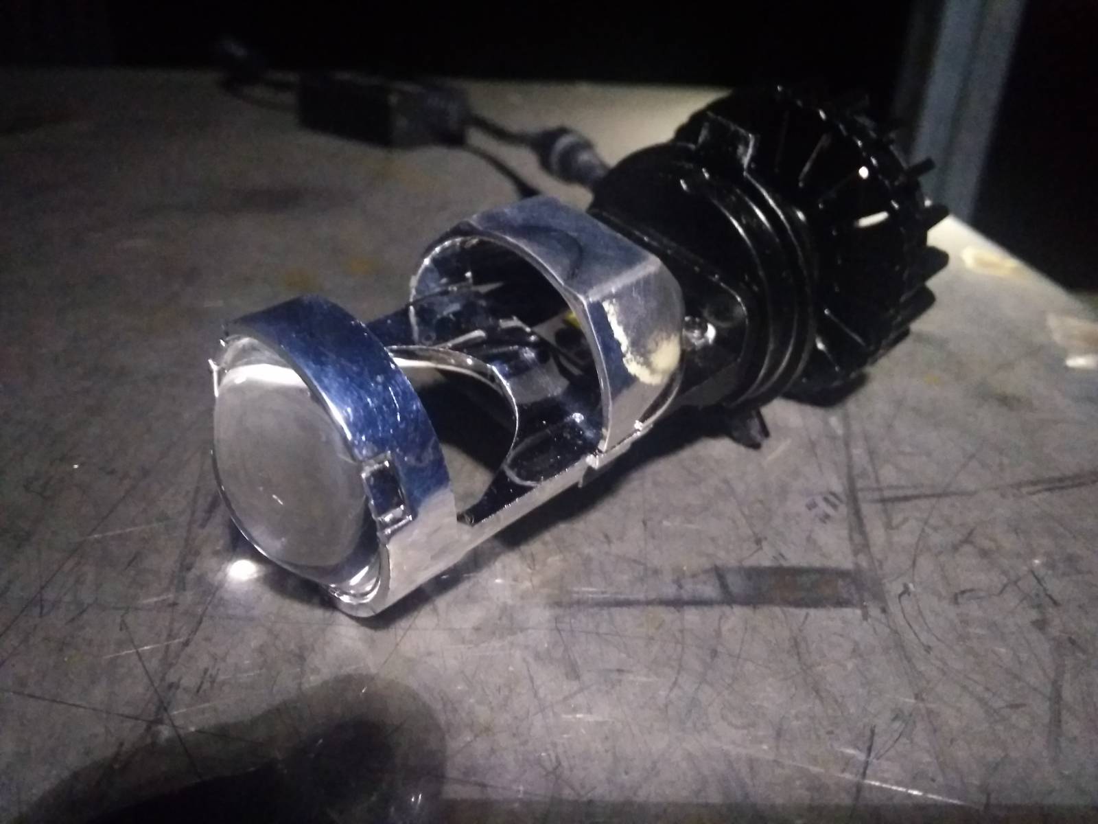 Неугомонные китайцы вместо лампочки Н4 придумали линзованный модуль, который просто вставляется в фару . Единственное нужно предварительно снять колпак- отбойник , который формирует свето-теневую границу и мешает установке.