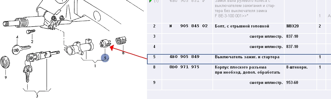 Ты имеешь ввиду выключатель зажигания и стартера? Тогда его каталожный номер 4B0 905 849 .