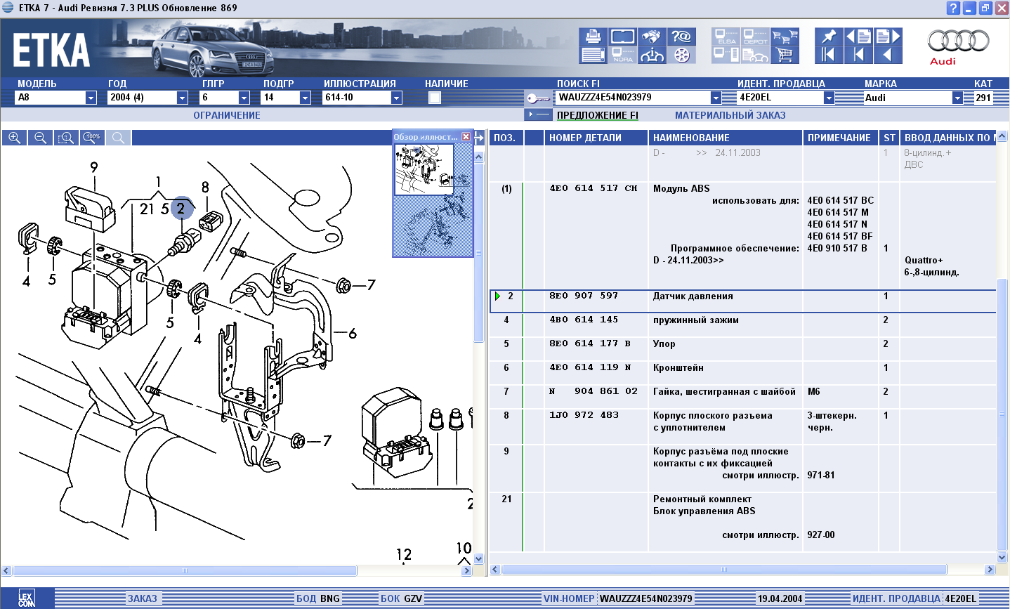 Vitaliyak писал(а):... помогите определить номерочек "датчика давления в тормозной системе G201" в моей А8 Д3 2004г 3,0тди вин: wauzzz4e54n023979