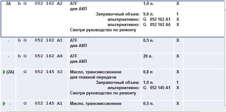 Каталожные номера оригинального масла гидроусилителя руля с учётом объёма тары