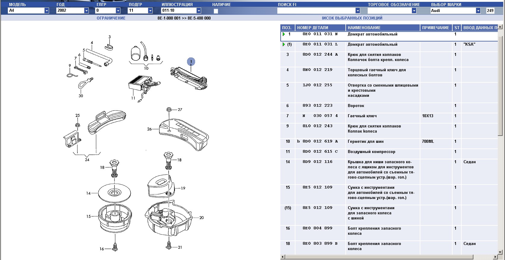 Определение каталожных номеров запчастей на Audi