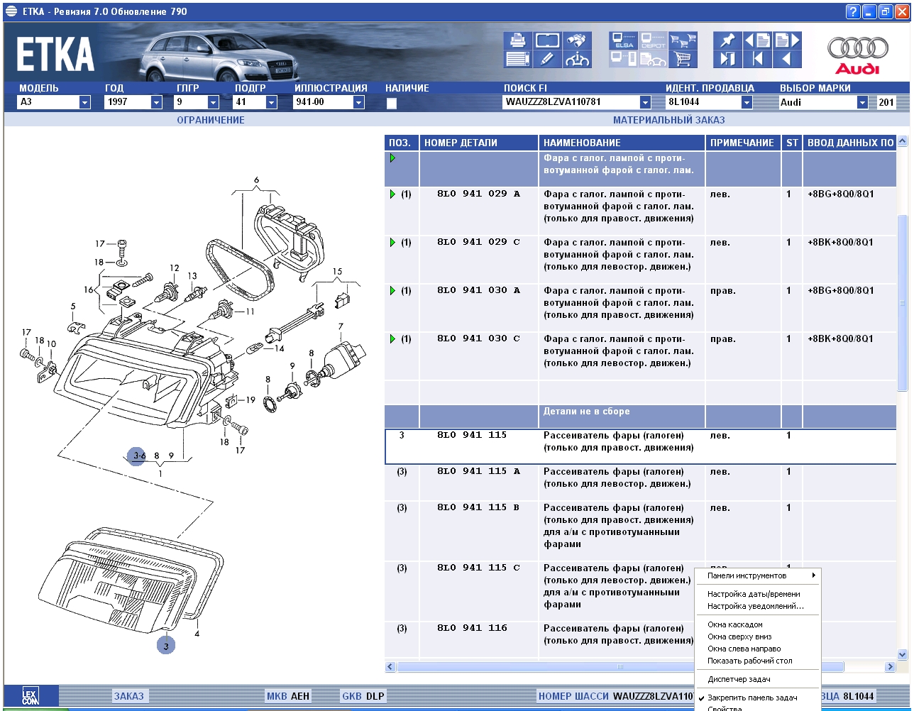 Тем самым ещё раз подчёркиваю, что достоверного определения каталожного номера нужной з/ч необходимо иметь актуальные установленные обновления ETKA.