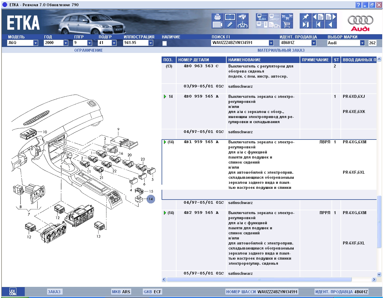 Определение каталожных номеров запчастей на Audi