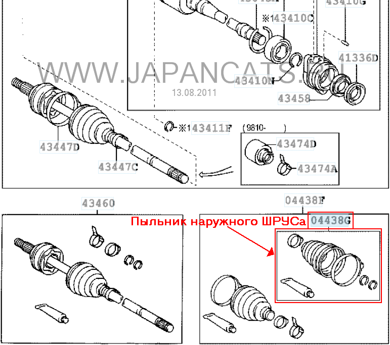 Касательно наличия пыльника я сомневаюсь, т.к. он идёт отдельной позицией: Toyota 04438-05090