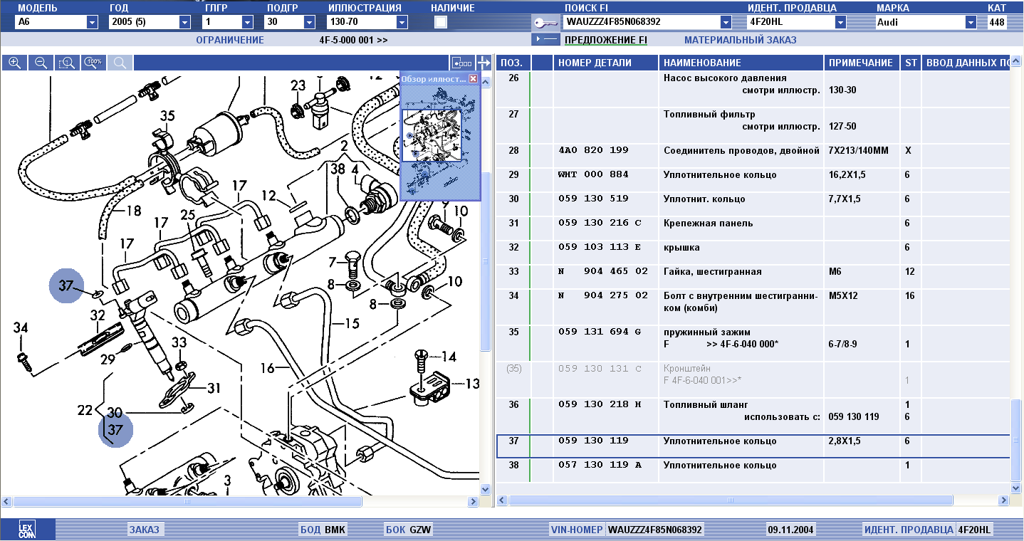 witoss, каталожный номер поз.37 вы можете увидеть на выложенном мною скришноте - это кольцо как раз выделено на нём - 059 130 119.