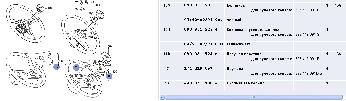 Игорь писал(а):Alexandr Pavlovich, насколько я помню визуально (приходилось неоднократно :x снимать накладку руля), эти защёлки являются частью руля. Посмотрев по ETKA я пришёл к выводу, что как отдельная з/ч они поставляются. Есть лишь сами пружинки.