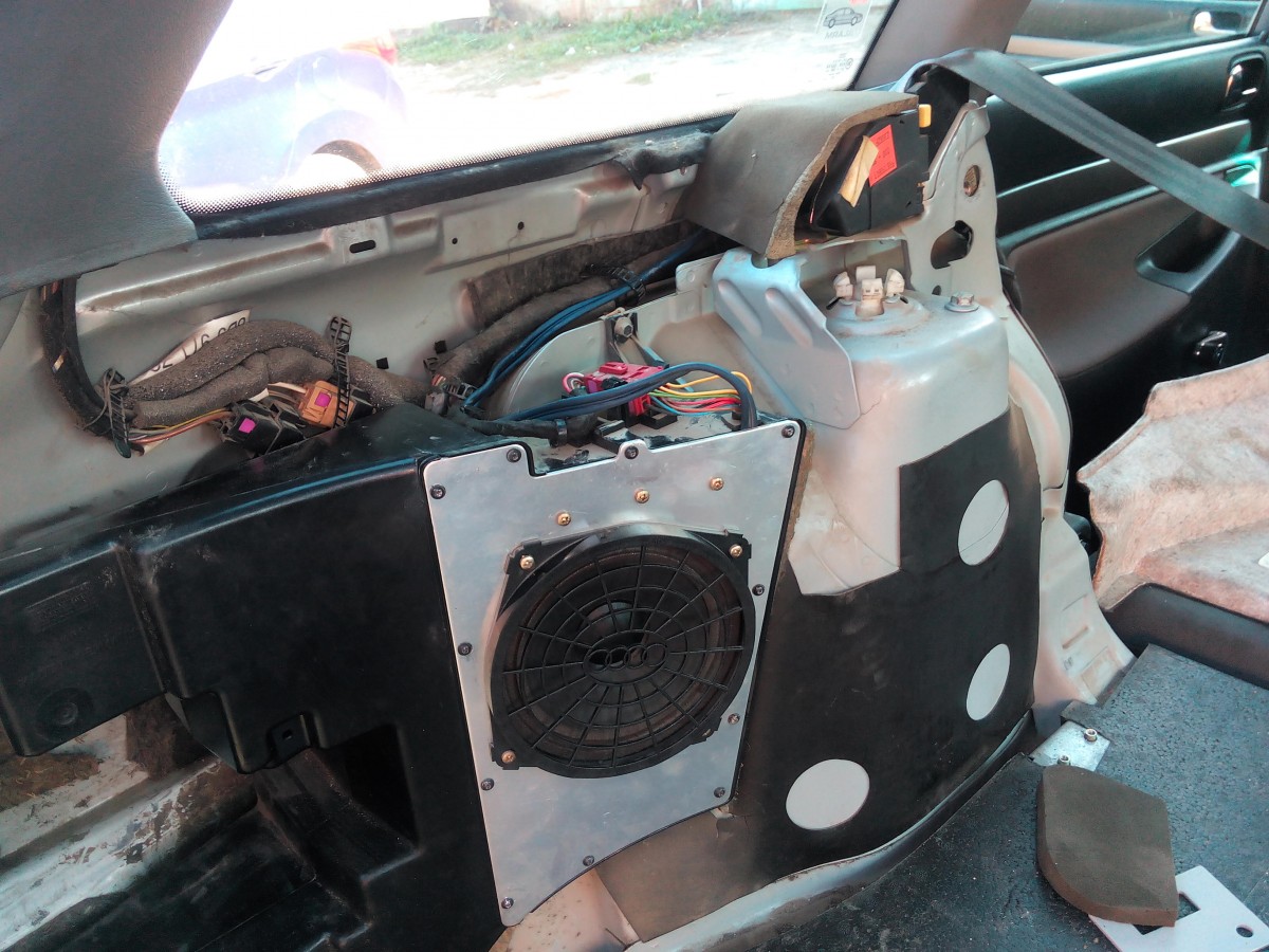даже и не знаю с чего начать... всё началось с того, что мне не нравился звук только от передних колонок, было принято решение купить динамики в задние двери, сняв обшивку задних дверей я обнаружил там заводские динамики, но проводов к ним не шло никаких, так как обшивка уже была снята, я решил протянуть туда провод от магнитолы, нашёл дома 7метров провода и вуаля звук из унылого говна превратился в весьма приятный басистый и довольно объёмный. Прошло пару недель, пока я начитался всякой литературы на форумах и т.д. , не суть, главное то что я уже был уверен что в багажнике у меня есть саб, который молчал((( вскрытие показало что он даже с пучком проводов, из десяти проводов 2 были питающие, проверив тестером я даже удивился на саб приходило 12V, попытки проследить оставшиеся 8 проводов не увенчались успехом, возможно причина ещё в том что я был один и мне нужно было всё успеть собрать до поездки на работу(ночная смена) . Короче протянул я обычный акустический провод один от правого, другой от левого канала задних колонок и повесил их возле магнитолы на обычную скрутку. На сабе не нашёл на какие из 8-ми проводов повесить(вход) и принял решение вешать на прямую на динамик саба. Получается работает не заводской сабовский усилок, а усилок магнитолы. Звук стал на порядок объёмнее и басовитее. Может что и переделаю позже, но не по такой погоде этим заниматься))) доживём до весны, а там будет видно. тем более есть проблемы поважнее, такие как замена управляющей форсунки, замена свечей накала, а вот это пожалуй самое важное замена гидрокомпенсаторов на второй половине двигателя, но на всё это пока нет средств(((. Фотки сделал всего 4, так что кидаю всё что есть...