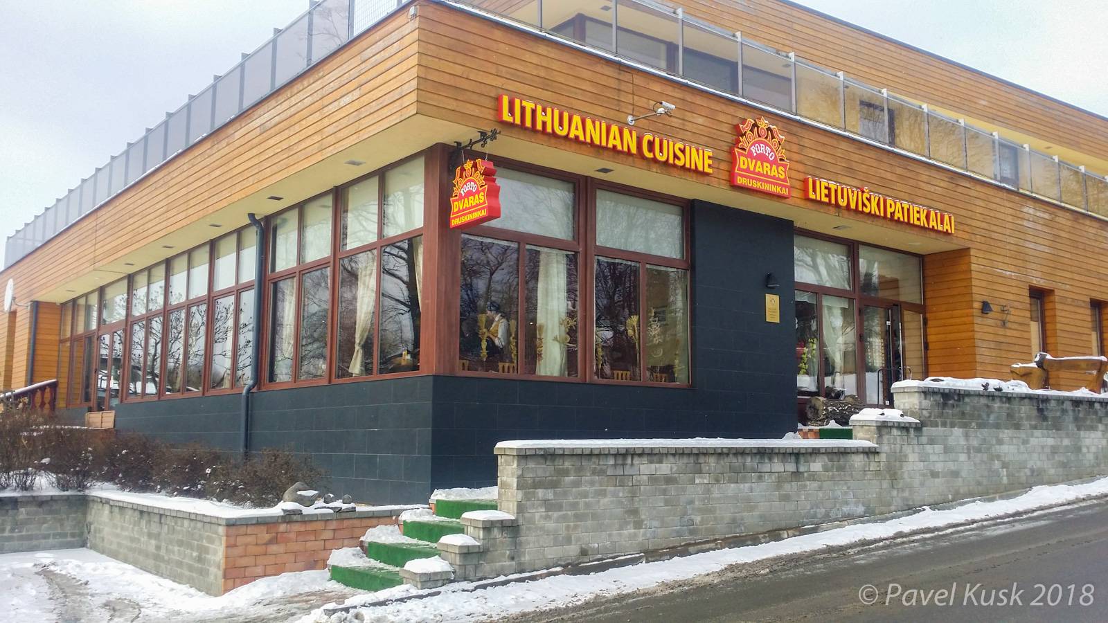 Счет 9,5 EUR. Платим и идем на улицу. Ресторан находится у озера Druskonis. Естественно с такими морозами (утром когда ехали было -18 градусов там) оно замерзло. Чксть льда очистили от снега и получился красивый каток. Все желающие не упустили возможность воспользоваться: