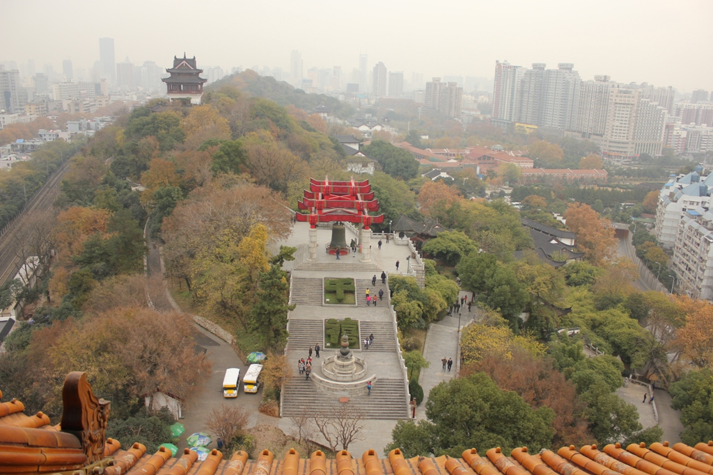 Немного из истории, что помню: для жителей Китая это является символом города Ухань. Расположена на Змеиной горе (после она будет видна на фото). Ее история насчитывает почти 1800 лет. Согласно легенде давно-давно в корчму некоего "чувачка" приходил поесть старик. Он был очень жалок и стар и хозяин не брал с него денег. Так продолжалось какое-то время (вроде около полугода). И старик, в благодарность за гостеприимство, апельсиновой коркой нарисовал на стене желтого журавля. Как только хлопал хозяин в ладоши журавль оживал и начинал танцевать. Птица привлекала внимание, и посетителей, дела пошли в гору. Так продолжалось около десяти лет, до тех пор, пока в корчму снова не пришел старик и не улетел на желтом журавле. А хозяин корчмы, в благодарность о чуде построил Башню желтого журавля. Вот такая вот легенда. В свое время она была разрушена и в 1985 году (год моего рождения) ее восстановили (почти сто лет ее не было). Также она является одной из первых башен всего Китая. Высота более 50 метров.