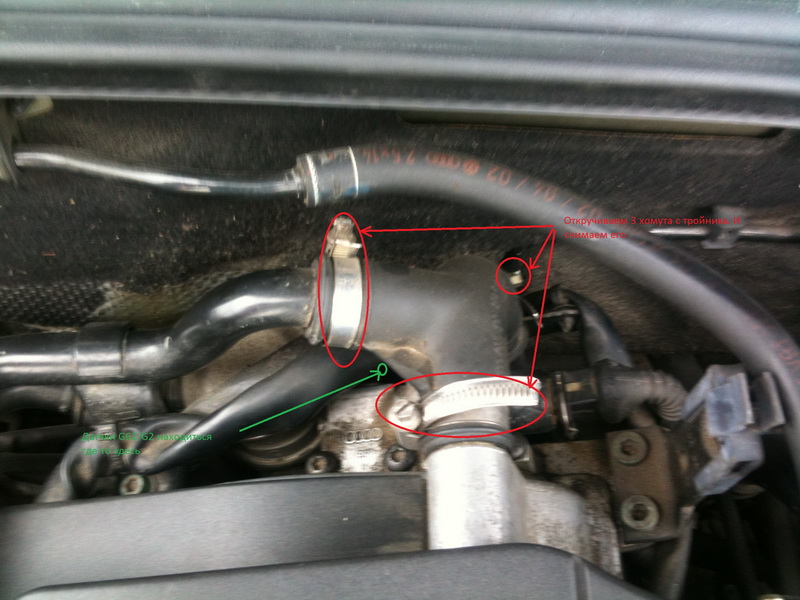 2. Открутил 3 хомута с тройника системы ВКГ: