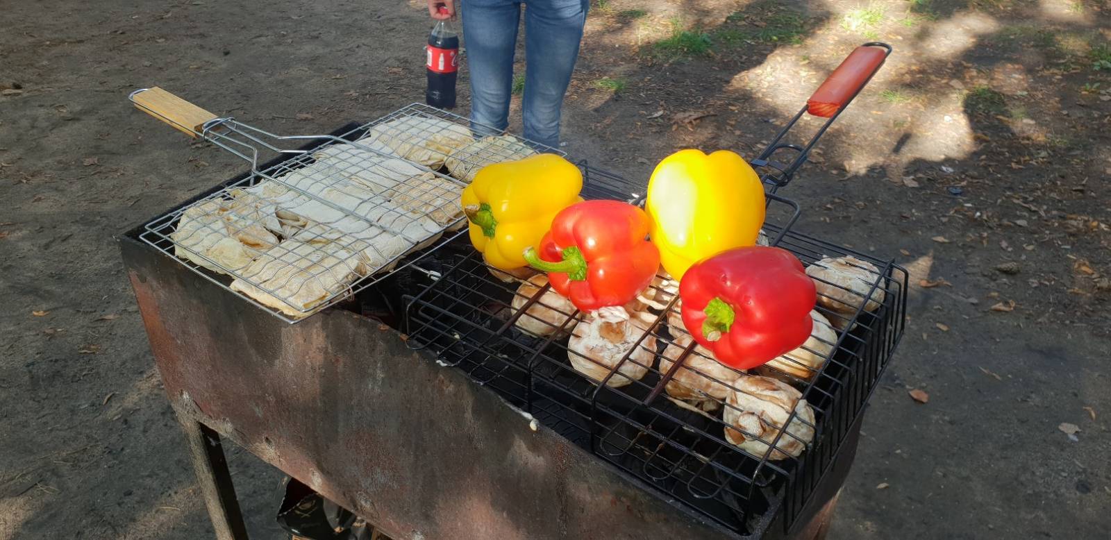 Людей там как обычно - почти все беседки заняты. Ребята одни к мероприятию готовились какому-то и я у них отложил место на мангале вместе с решеткой :oops: