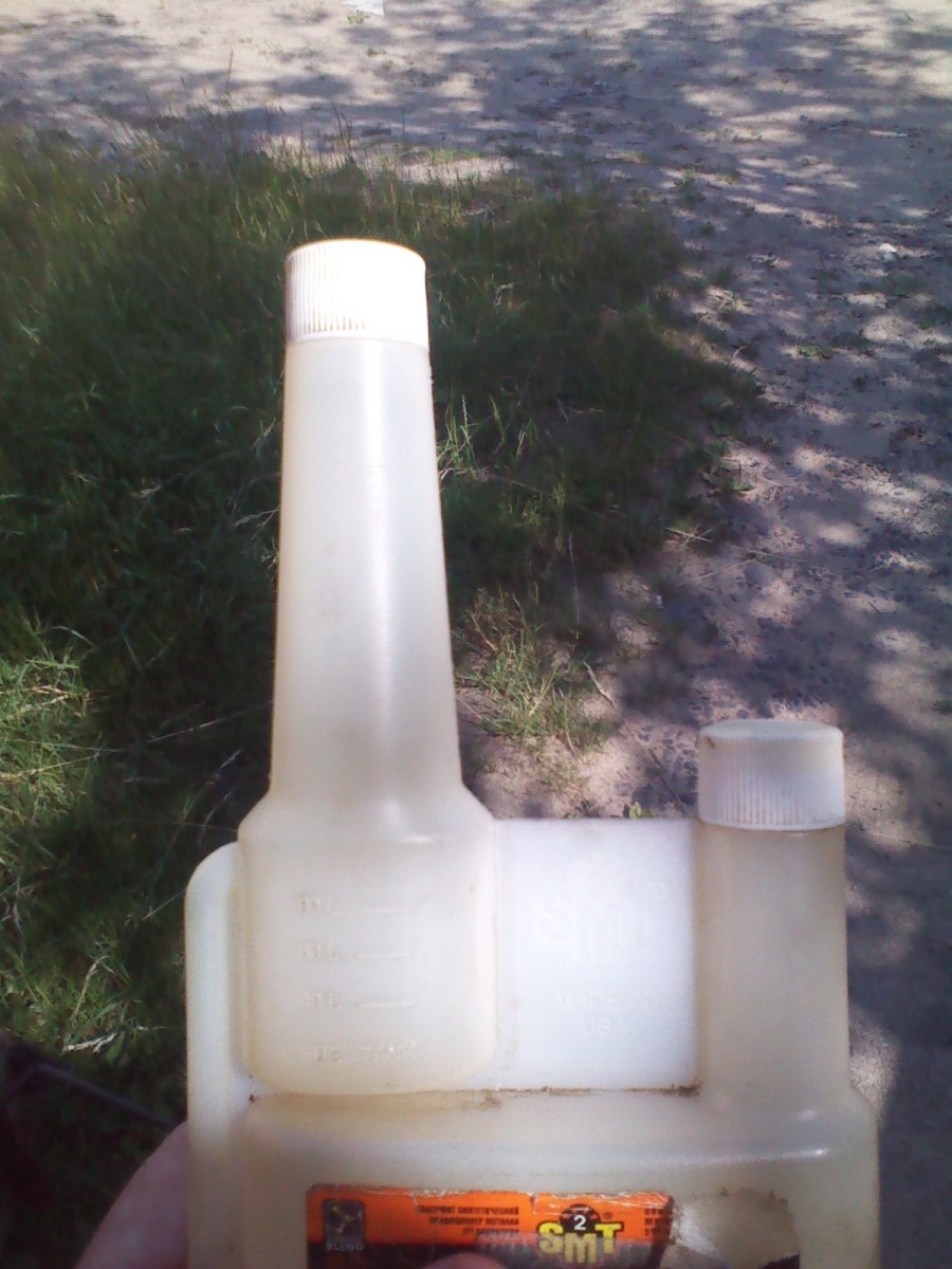 ) и для удобства переливаю в баночку из-под какого-то очистителя с мерным вторым длинным горлышком. Родной мерный стаканчик в пробке очень уж не удобная штука