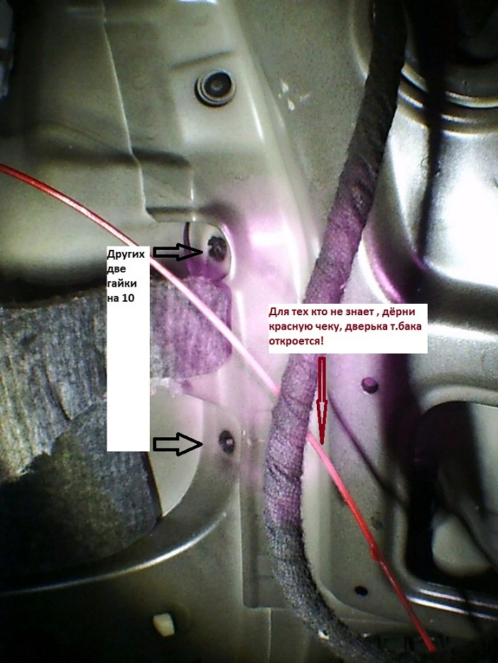 Потом по 4-ри гайки из нутри багажника с каждой стороны, так как комплектация (Г) -хорошая, нам ничего не мешает, правая сторона на ура, не забываем их там четыри, ещё два тут