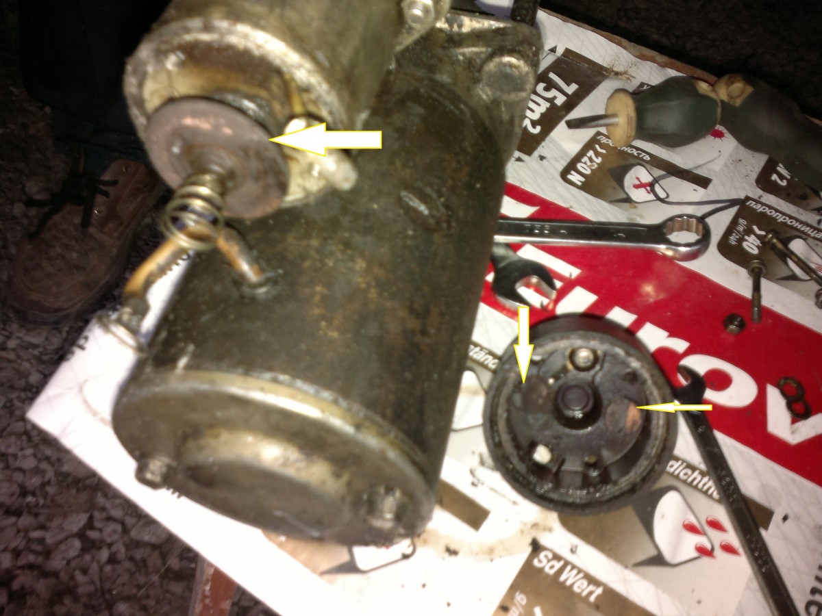 Стартер снят, а с него - крышка контактной группы. Состояние - никогда бы не сказал, что с ними стартер мог вообще работать.