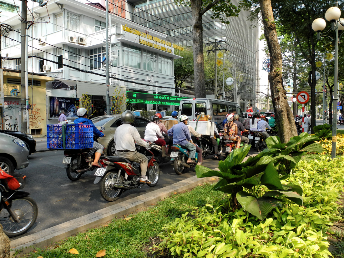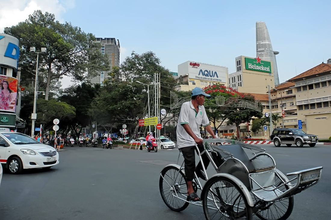 Прибывши на улицу к первому попавшемуся отелю, счетчик отсчитал 160.000 донг (8$) и мы взяли первую попавшуюся комнату за 18$ Ничего необычного сейф, холодильник, кондишен. Оставив вещи, решили побродить по Сайгону. Девушка на ресипшене предупредила нас, чтобы мы не носили сумки на плече, фотоаппараты, документы, во избежание кражи проезжими хулиганскими байками. Слышал о трех случаях краж документов.