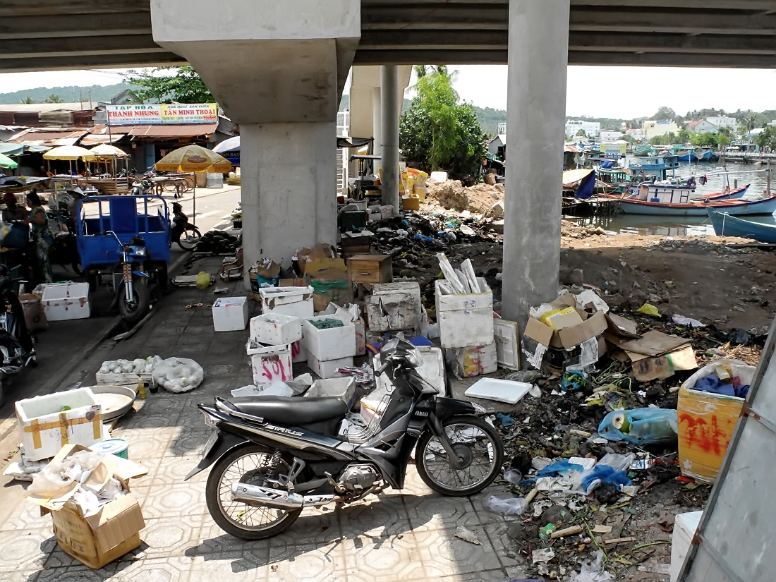 Если вы хотите купить морких продуктов подешевле, можно посетить обычный рынок, где в основном рыба, как у нас картошки осенью. Здесь конечно все пропитано вьетнамским духом, мусор вперемешку с мясом, но мне после африканских рынков на экваторе это не удивило.