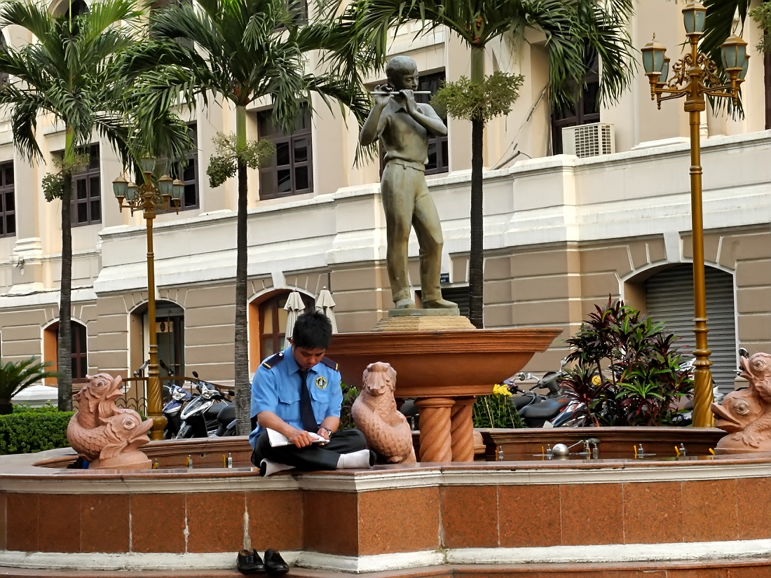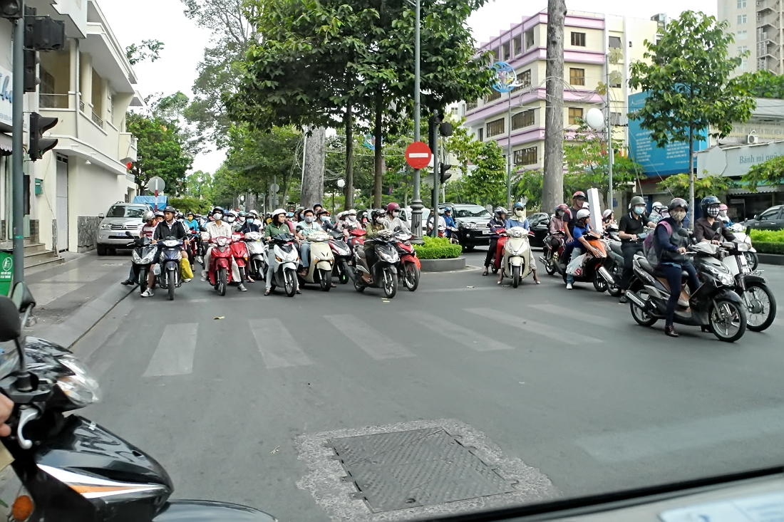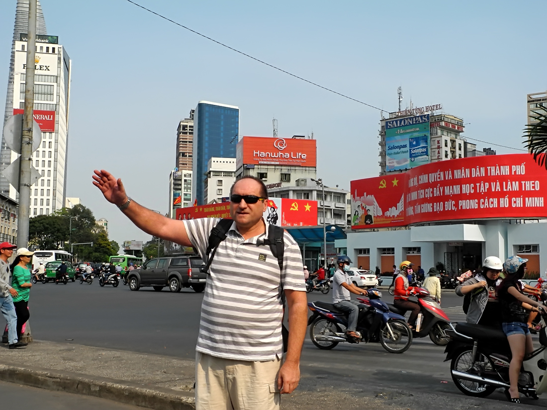 Прибывши на улицу к первому попавшемуся отелю, счетчик отсчитал 160.000 донг (8$) и мы взяли первую попавшуюся комнату за 18$ Ничего необычного сейф, холодильник, кондишен. Оставив вещи, решили побродить по Сайгону. Девушка на ресипшене предупредила нас, чтобы мы не носили сумки на плече, фотоаппараты, документы, во избежание кражи проезжими хулиганскими байками. Слышал о трех случаях краж документов.