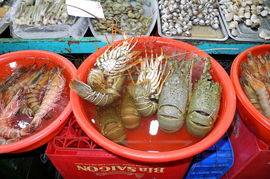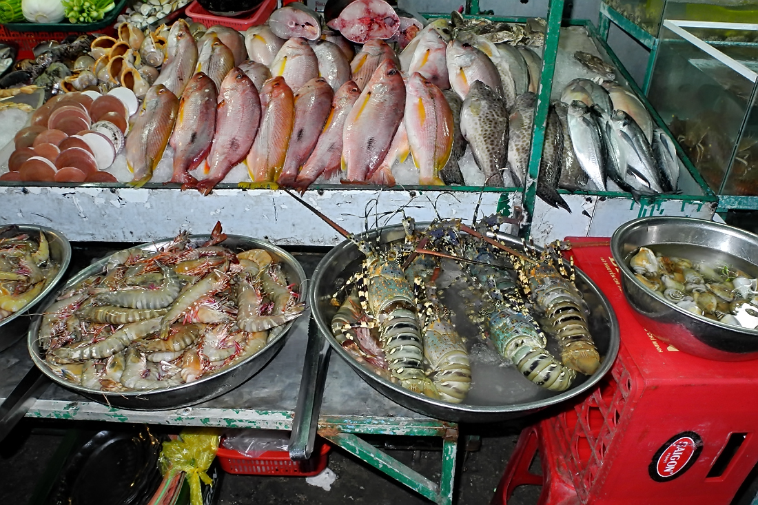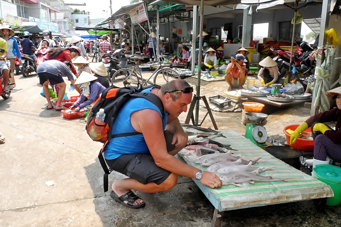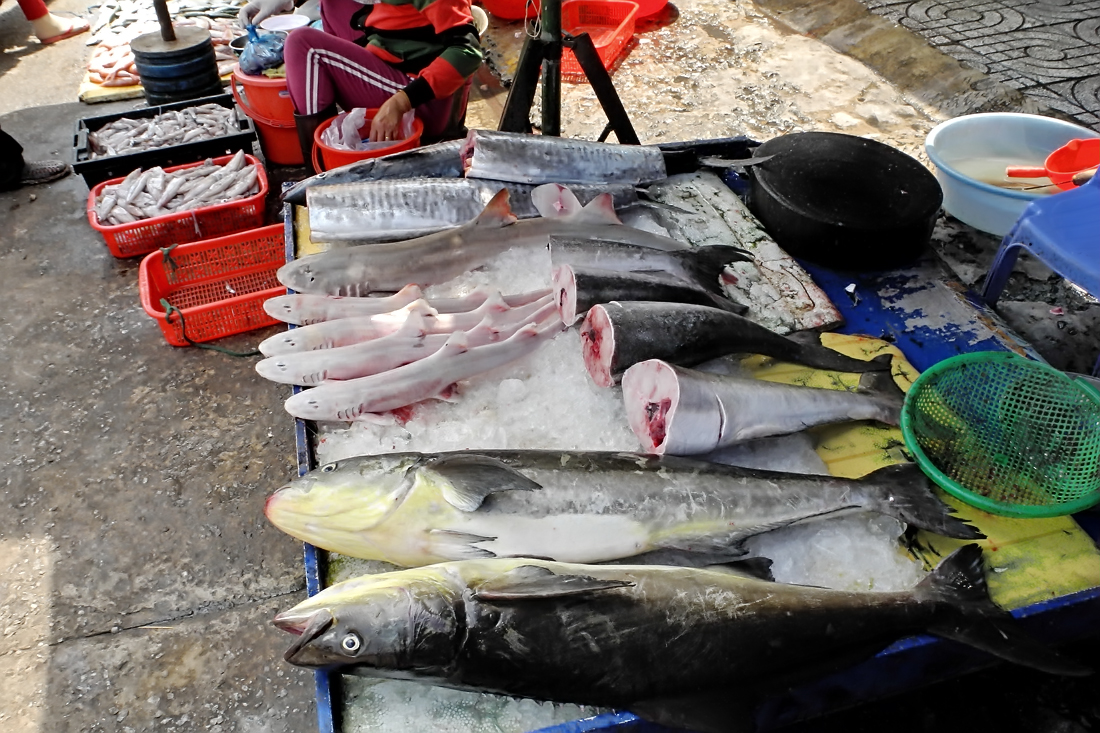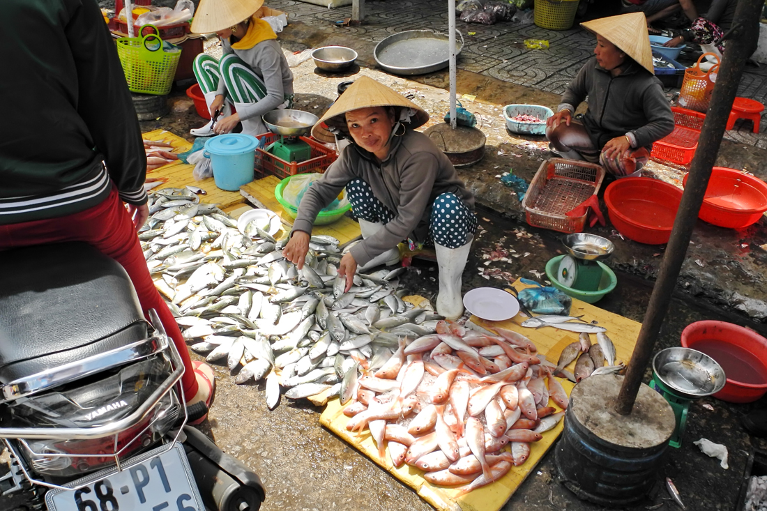 Если вы хотите купить морких продуктов подешевле, можно посетить обычный рынок, где в основном рыба, как у нас картошки осенью. Здесь конечно все пропитано вьетнамским духом, мусор вперемешку с мясом, но мне после африканских рынков на экваторе это не удивило.